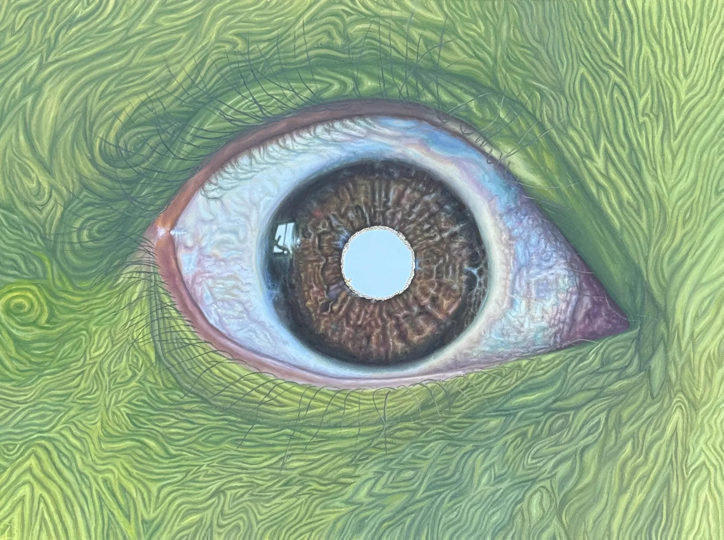 acrylic and oil paint, molding paste and paint pens